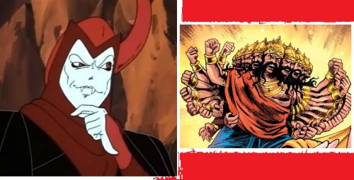 A capitalism/sports-market 'diorama' featuring a 'cool' Earth-debate between the antihero sorcerer Venger (Dungeons & Dragons cartoon) and the fierce multiheaded anarchist Ravana (Ramayana Indian epic). Inspired (loosely) by Capitalism: A Love Story (Michael Moore).