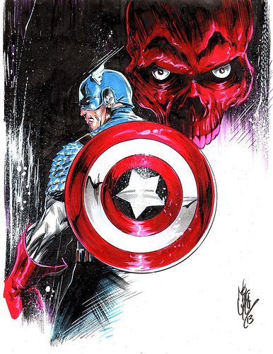 Captain America and Red Skull (Marvel Comics) portrait of governance/imagination (with a psyche/sociological pseudo-fun reference to the riddling contradictory Liar-paradox of language-logic communication reliability computation words), to close my Saturday-'26 day of writing. Thanks for reading!