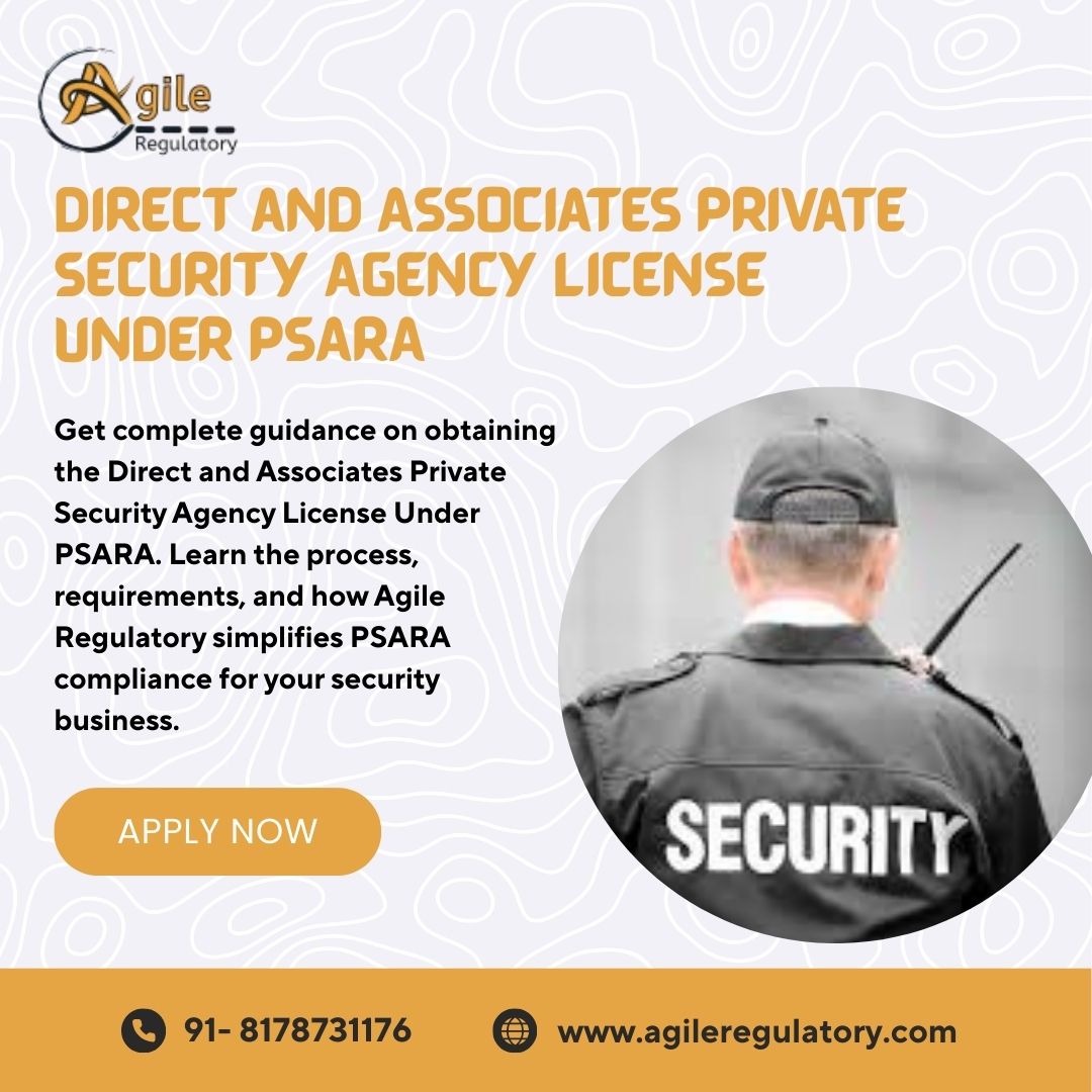 Everything You Need to Know About PSARA ComplianceA Story by AgileGet complete guidance on obtaining the Direct and Associates Private Security Agency License Under PSARA. Learn the process, requirements, and how Agile Regulatory simplifies PSARA compliance for yourStarting a private security agency in India requires strict compliance with legal regulations, the most important being the Direct and Associates Private Security Agency License Under PSARA. This license is mandatory for operating any private security business and ensures that agencies meet government standards for safety, training, and reliability. PSARA, or the Private Security Agencies Regulation Act, governs the functioning of private security firms across the country. Without proper authorization under PSARA, operating a security agency is considered illegal. The licensing process involves several steps, including documentation, verification, and coordination with state authorities. To obtain a license, applicants must first establish a registered business entity. This can be a sole proprietorship, partnership, or private limited company. After registration, the next step is preparing the required documents such as identity proof, address proof, financial records, and details of directors or partners. One of the critical requirements under PSARA is the verification of the applicant’s background. Authorities conduct police verification to ensure there is no criminal history. Additionally, the agency must provide proper training to its security personnel as per prescribed guidelines. The process can be complex and time-consuming, especially for new entrepreneurs. This is where Agile Regulatory plays a vital role. With expert guidance and in-depth knowledge of compliance procedures, Agile Regulatory helps businesses navigate the licensing process efficiently. From documentation to submission and follow-ups, their support ensures that applications are handled professionally and without unnecessary delays. Obtaining the Direct and Associates Private Security Agency License Under PSARA not only makes your business legally compliant but also builds credibility in the market. Clients prefer licensed agencies as they guarantee professionalism and adherence to government standards. In conclusion, while the PSARA licensing process involves multiple steps, proper planning and expert assistance can make it smooth and hassle-free. Partnering with experienced consultants like Agile Regulatory ensures that your security agency is set up on a strong legal foundation, allowing you to focus on growing your business successfully. © 2026 Agile |