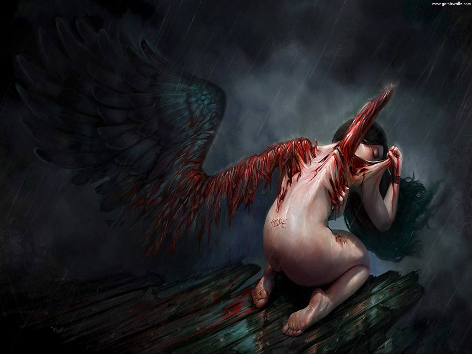 But no there's more, the turmoil must grow With broken soul they make game of your being But in such a dark space there's no place for fleeing Those rocks are thrown and more pain is inflicted You try to shield and gold wings get tinted Its hard not to give in with corruption surrounding And it will drive you insane with darkness hounding The dark offers relief at a very high gamble The offer feels sweet and options seem like ramble Coming to senses is like a bullet to the brain Its hard to pull away and throw the offer down the drain Gold wings now black and dripping with blood Drenching feathers in a crimson flood Huddled in a cave broken and throbbing Hearing the echo of your own quiet sobbing Hearing the laughter of the torturous fiends Laughing at the one in the crevice so unseen Longing for the clouds of bright, beautiful cotton Welcome young one to life at the bottom... © 2013 Blut Gemalt RosenReviews