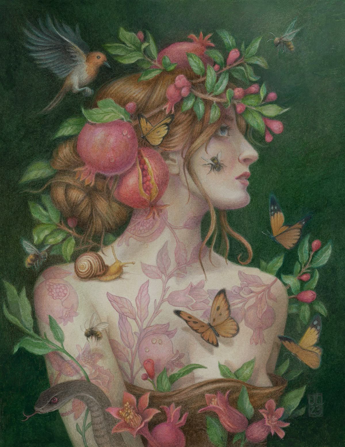 Persephone’s ReturnA Poem by Curly GraceI walk the shadowed path where spring dissolves, The underworld whispers my name in fire. In every bloom, a longing that revolves. The pomegranate cracks, and fate absolves, Its red heart bleeding into my desire. I walk the shadowed path where spring dissolves. A mother waits, her sorrow never solves, Yet I rise, drawn by dark and secret pyre. In every bloom, a longing that revolves. The dead call softly, each voice dissolves Into the pulse of winter’s cruel choir. I walk the shadowed path where spring dissolves. I taste the fruit, the cycle never solves, And blood and bloom entwine in funeral attire. In every bloom, a longing that revolves. I am return, the veiled, the shadowed, the absolves, The queen of loss, of fire, of funeral pyre. I walk the shadowed path where spring dissolves, In every bloom, a longing that revolves.