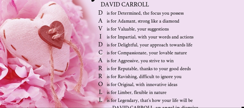 Added on December 3, 2018 Last Updated on December 3, 2018 AuthorDavid P CarrollDublin, Dublin, IrelandAboutDavid P Carroll an Irish poet who has written poetry for several different websites online I've published poetry in the news and newspaper's around the world I've been on the radio I've been on live T.. more.. |