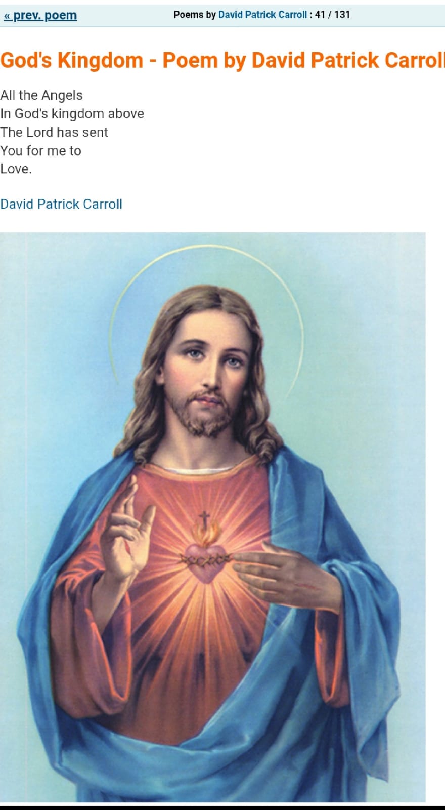Joy in my life The lord is my Shepard Jesus Christ shows me the way He's in my heart every day I fellow him, And I love him so much every day With his guiding light We'll be alright every night Every morning I hope And pray the Lord Jesus Christ Will take this horrible virus away.. David P Carroll. © 2020 David P Carroll |