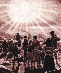 The people of God"some in prison cells, some hidden in solitary retreats in the forests and the mountains"still plead for divine protection, while in every quarter companies of armed men, urged on by hosts of evil angels, are preparing for the work of death. It is now, in the hour of utmost extremity, that the God of Israel will interpose for the deliverance of His chosen. Saith the Lord; "Ye shall have a song, as in the night when a holy solemnity is kept; and gladness of heart, as when one goeth ... to come into the mountain of the Lord, to the Mighty One of Israel. And the Lord shall cause His glorious voice to be heard, and shall show the lighting down of His arm, with the indignation of His anger, and with the flame of a devouring fire, with scattering, and tempest, and hailstones." Isaiah 30:29, 30. With shouts of triumph, jeering, and imprecation, throngs of evil men are about to rush upon their prey, when, lo, a dense blackness, deeper than the darkness of the night, falls upon the earth. Then a rainbow, shining with the glory from the throne of God, spans the heavens and seems to encircle each praying company. The angry multitudes are suddenly arrested. Their mocking cries die away. The objects of their murderous rage are forgotten. With fearful forebodings they gaze upon the symbol of God's covenant and long to be shielded from its overpowering brightness. By the people of God a voice, clear and melodious, is heard, saying, "Look up," and lifting their eyes to the heavens, they behold the bow of promise. The black, angry clouds that covered the firmament are parted, and like Stephen they look up steadfastly into heaven and see the glory of God and the Son of man seated upon His throne. In His divine form they discern the marks of His humiliation; and from His lips they hear the request presented before His Father and the holy angels: "I will that they also, whom Thou hast given Me, be with Me where I am." John 17:24. Again a voice, musical and triumphant, is heard, saying: "They come! they come! holy, harmless, and undefiled. They have kept the word of My patience; they shall walk among the angels;" and the pale, quivering lips of those who have held fast their faith utter a shout of victory. It is at midnight that God manifests His power for the deliverance of His people. The sun appears, shining in its strength. Signs and wonders follow in quick succession. The wicked look with terror and amazement upon the scene, while the righteous behold with solemn joy the tokens of their deliverance. Everything in nature seems turned out of its course. The streams cease to flow. Dark, heavy clouds come up and clash against each other. In the midst of the angry heavens is one clear space of indescribable glory, whence comes the voice of God like the sound of many waters, saying: "It is done." Revelation 16:17. That voice shakes the heavens and the earth. There is a mighty earthquake, "such as was not since men were upon the earth, so mighty an earthquake, and so great." Verses 17, 18. The firmament appears to open and shut. The glory from the throne of God seems flashing through. The mountains shake like a reed in the wind, and ragged rocks are scattered on every side. There is a roar as of a coming tempest. The sea is lashed into fury. There is heard the shriek of a hurricane like the voice of demons upon a mission of destruction. The whole earth heaves and swells like the waves of the sea. Its surface is breaking up. Its very foundations seem to be giving way. Mountain chains are sinking. Inhabited islands disappear. The seaports that have become like Sodom for wickedness are swallowed up by the angry waters. Babylon the great has come in remembrance before God, "to give unto her the cup of the wine of the fierceness of His wrath." Great hailstones, every one "about the weight of a talent," are doing their work of destruction. Verses 19, 21. The proudest cities of the earth are laid low. The lordly palaces, upon which the world's great men have lavished their wealth in order to glorify themselves, are crumbling to ruin before their eyes. Prison walls are rent asunder, and God's people, who have been held in bondage for their faith, are set free. Graves are opened, and "many of them that sleep in the dust of the earth ... awake, some to everlasting life, and some to shame and everlasting contempt." Daniel 12:2. All who have died in the faith of the third angel's message come forth from the tomb glorified, to hear God's covenant of peace with those who have kept His law. "They also which pierced Him" (Revelation 1:7), those that mocked and derided Christ's dying agonies, and the most violent opposers of His truth and His people, are raised to behold Him in His glory and to see the honor placed upon the loyal and obedient. Thick clouds still cover the sky; yet the sun now and then breaks through, appearing like the avenging eye of Jehovah. Fierce lightnings leap from the heavens, enveloping the earth in a sheet of flame. Above the terrific roar of thunder, voices, mysterious and awful, declare the doom of the wicked. The words spoken are not comprehended by all; but they are distinctly understood by the false teachers. Those who a little before were so reckless, so boastful and defiant, so exultant in their cruelty to God's commandment-keeping people, are now overwhelmed with consternation and shuddering in fear. Their wails are heard above the sound of the elements. Demons acknowledge the deity of Christ and tremble before His power, while men are supplicating for mercy and groveling in abject terror. Said the prophets of old, as they beheld in holy vision the day of God: "Howl ye; for the day of the Lord is at hand; it shall come as a destruction from the Almighty." Isaiah 13:6. "Enter into the rock, and hide thee in the dust, for fear of the Lord, and for the glory of His majesty. The lofty looks of man shall be humbled, and the haughtiness of men shall be bowed down, and the Lord alone