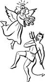 in the fight of good versus evil it is an never ending war from the mystic figures of folklore who some will hold that these are the truths winged creatures with the faces of angels and those with the faces of horned demons some will swear these creatures are real and exist even to this day funny how the ones who represent good have the faces of beauty and are referred to as angels while the ones who represent evil have the faces of ugly and are referred to as demons its also funny that we prove over and over that our interpretation of ugly and beautiful have nothing to do with good or evil in fact quite often it is just the opposite you see it is not the outward appearance or even the sometimes garbled rhetoric spewed from the mouths that can be identified as good or evil beauty or ugliness far too often ones who spread christian kindness maintain a darkness inside their souls it is easy to be fooled sometimes by those who wear masks and think of themselves as saints condeming others and claiming they are sinners history has proved this time and again and for those who think they really know the truth they really have all the answers good for them faith is a good thing there is nothing wrong with faith but it is a belief based upon nothing that can be proved to be real and that is why it is called faith but those who are of this realm cannot and should not condem those that are skeptical of their intentions and maybe those who need proof should try having a little faith since they have no proof either I think we all know deep in our hearts what is good we also know what is evil at least I hope so I suspect though that things will continue as they have over the millenium of time there will continue to be finger pointers there will continue to be liars and cheats there will always be the battle of sinners and saints