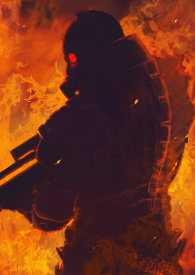 Meanwhile, Raymond with a delightfully creepy crooked smile on his face squeezed the trigger. Three rounds got out before the creature was upon him; he slammed into the ground with a thud. Something was off, he had gotten slammed into things much harder than that, and even though the creature was grand in stature it hadn’t applied much force. Yet, Raymond felt completely out of breath almost as if it were sucked out of him. Raymond squeezed the trigger again and the Qt special freaked out almost as if it were jammed. Daniel already assessing the situation, ran to a desk leaped and pushed off of it with his left foot then brought his right foot around to connect with the creatures head. The creature slid a few feet across the floor and leaped back to its feet, and then darted into the shadows. “DAMN cuz what the frock was that!” “I thought that a*s wipe Bennett, said this s**t was gern be like training….” “shhh!” Daniel whispered "shut up" and followed the movements of the creature about the room listening to every nudge and scratch. As he did this Raymond continued his mindless chatter, which wouldn’t bother Daniel so much if only the kid made sense when he did it. Daniel would never admit it openly but Ray sort of gave him the creeps. Still, Ray always helped him out when he was in a jam, so what’s a little weirdness to deal with? Although, he had been acting weirder than usual. At this point, Daniel leaped back from a swift but powerful swipe of the creature’s talon...so swift that Daniel almost didn’t spot it. If it were not for his keen ears he might be dead. Too bad he wasn’t fast enough to dodge the next one which came in the form of a back hand that sent him crashing into what seemed to be a lunch room. Raymond shouted for him “Danny, you ok cuzzo?” “Yeah I’m cool. I think I’m in the lunch room, there’s a strong smell of coffee and I think this is a microwave my back is bent over on…” “Yeah yeah frock dat where da wibe gone?” “Trust me duddy if I knew where dat ting was u was gurn hear it.” “Hey cuzzo ya Qt jamming too, cause I een know if it’s just me but mine freakin out.” “Bey to be honest my piece over dere on da floor by the solid chic, I think sumthin’s going on with the air pressure in and around this joint, cause my breathing has been off ever since we entered this place, it’s like HA(high altitude) training.” “Or