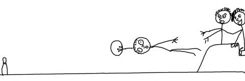 We were kind of hoping he'd go all the way and get a strike with his whole body. Unfortunately, he didn't. We’d love to have seen him dragged back through the tube that brings the balls back.