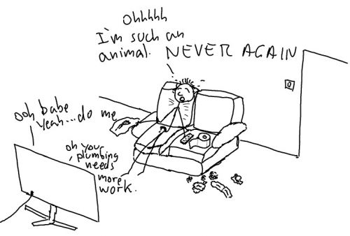 Actually though, my mates and I ALL felt so utterly disgusted and appalled by our solo action that we would try to give it up-We never managed.