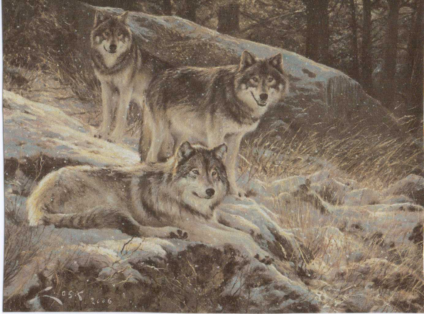 A very beautiful picture of wolves in a winter landscape. Nice pen on this one.