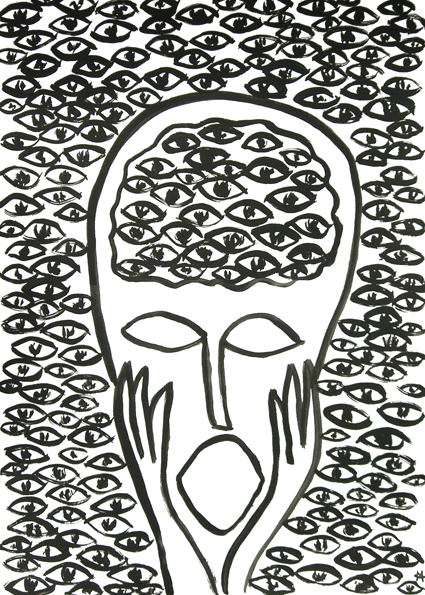 lateralus, tool:A Story by delapruchEYES WIDE OPEN PARANOID WITH ONE FOOT IN & ONE FOOT OUT OF THE VOID.Savage industries let us in on and under the barbed wire we still enquire within and stand back stand back for another attack---seems these days that no one is paying attention anymore anyway---and what are these but thoughts pressed on an electric page---evidence of anger---evidence of rage---you try and tell your loved ones that you are still the same but nobody can keep you from changing---twisting over and under asunder---placing face paint on and climbing back up the trees---keeping the lookout for what is coming and ready to slash and trash and accuse---paranoia sets in---all other things fade away---stuff yourself with drugs and telling yourself lies---blowing yourself up to a size which no one else can compare---who the H-E-double hockey-sticks do you think you are? hmmm? lay back and wait for the attack---grab your poisoned spear---rub the tip in poison---get back on your haunches---yes, you think you’ve got them right where you want them---but alas, they have nuclear weapons. © 2011 delapruch |