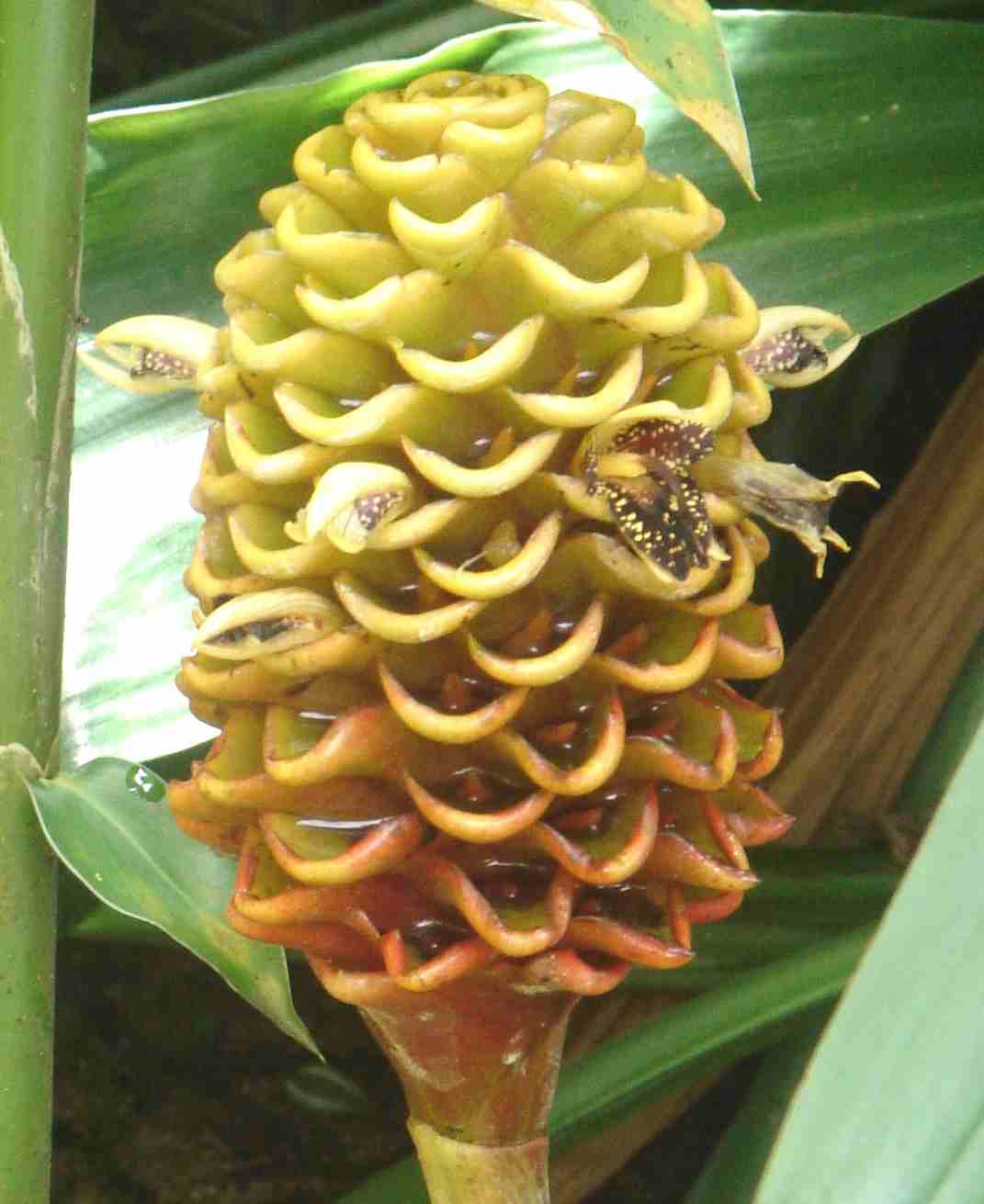 the calatheaA Poem by delapruchtis’ a perty lil’ deceiver.sitting there looking like something of a sunrise pine cone all yellowy & as if it was dipped in ruby red grapefruit juice it smiles at you with the gritty gross intent of a priest about to break all his vows & while the aptly named prayer plant of the forest offers up those same shallow little nothings for all the other plant life to drown in, that is no reason to condemn it for being perty. © 2011 delapruch |