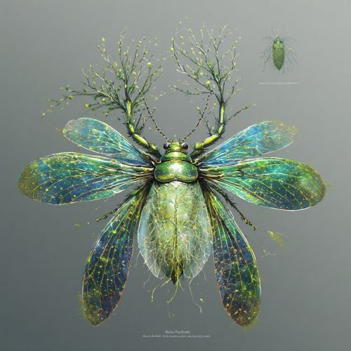 Size & Build: About 5 cm long, compact with six articulated legs ending in fine, hooked tarsi for gripping moss and uneven terrain. Body slightly flattened dorsoventrally, allowing it to navigate dense moss mats and shallow water pools with ease. Carapace & Underbelly: Iridescent green shell patterned like moss fronds, giving camouflage among moss carpets. Underbelly lined with fine, root-like filaments capable of absorbing excess water and nutrients directly from saturated substrates. Wings are translucent, folding neatly beneath the carapace when not in use; flight is short, mostly for repositioning within moss beds. Habitat: Moist terraces, root-pools, and shaded moss beds. Particularly sensitive to environmental anomalies like the Rogue Bloom, avoiding zones of spread, suggesting biochemical incompatibility. Behavior & Ecology: Primarily active after rainfall. Burrows aerate oversaturated soil, while bioluminescent signaling allows coordination in low-light conditions. Swarms function as a bio-indicator for soil oxygen levels, dispersing spores and preventing moss mats from becoming stagnant. Cultural Significance: Canopy Wardens monitor their activity to detect ecosystem imbalance. Festivals incorporate carved wooden Mossbeetle effigies released into rivers to symbolize cleansing and renewal.