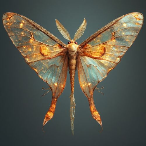 Classification: Nocturnal pollinating insect; wingspan ~15 cm. Morphology: Features delicate, transparent wings threaded with crystalline veins that refract starlight and residual solar glow. Luminescent markings along the wing edges serve dual purposes: attracting mates and startling potential predators. Antennae tipped with light-sensitive nodules help navigate complex air currents between terraces. Habitat: Roosts within quartz alcoves, Solarvine canopies, and crystal terrace eaves where ambient resonance stabilizes their wing structure. Often seen swarming around highland lanterns and spire crowns. Behavior & Ecology: Active shortly after dusk, Crystalwings pollinate high-altitude and cliffside blooms that rely on night breezes for pollen transfer. Larvae consume leaf-crystals, contributing to controlled Solarvine pruning and preventing overgrowth. Adults exhibit synchronized aerial dances during mating cycles, creating faint glimmering trails visible from the canopy floor. Cultural Significance: Revered as “Lantern Spirits” during seasonal festivals; trained Sages release them to illuminate processions or mark the start of resonance ceremonies. Their flight patterns are meticulously documented to study energy distribution and crystal pulse flow across spires. Interactions: Predated upon by Barkback's and Lumin's during food scarcity. Populations fluctuate with Solarvine density and seasonal crystal resonance peaks. Notes: Highly sensitive to harmonic disruptions, excessive bridge vibration or spire resonance can force colonies to relocate, often leaving entire terraces without pollination services until they return.