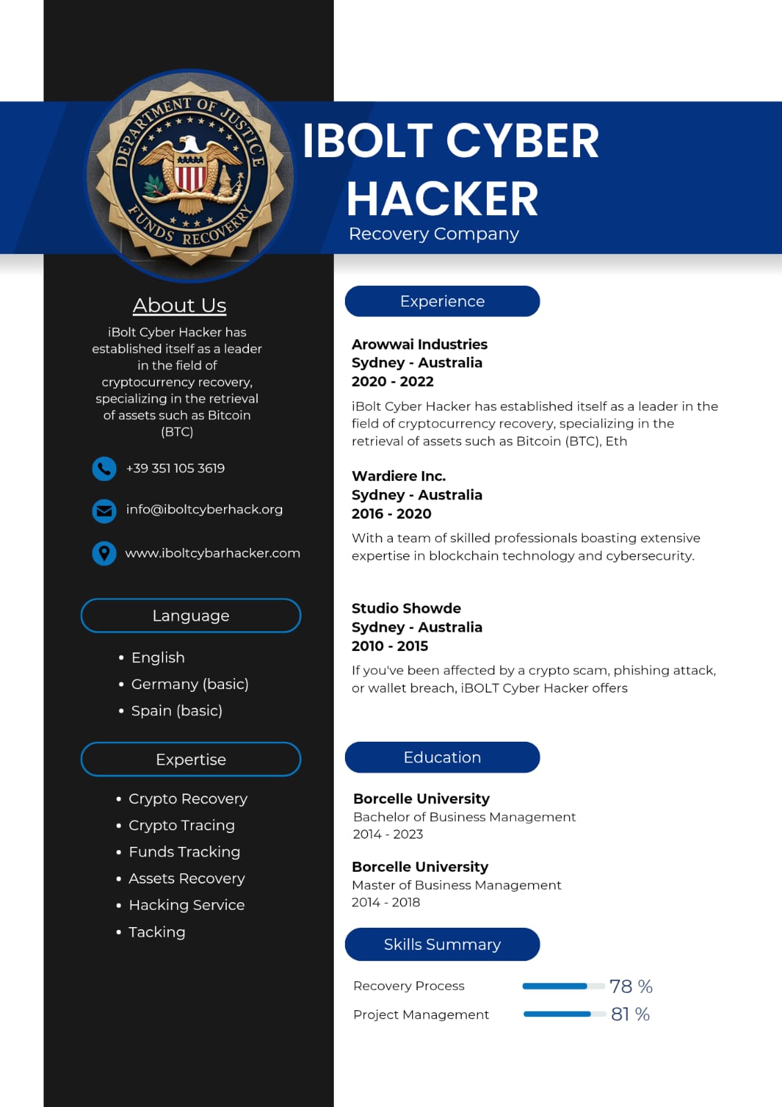 iBOLT CYBER HACKER: TRACK AND RECOVERED MY FROZEN CRYPTO INVESTMENTA Story by miguel borja- EMAIL: info@iboltcyberhack.org/ - WEBSITE: www.iboltcybarhacker.com/ - WHTSAPP: +39 351 105 3619 - TELEGRAM: t.me/iboltcyberhackserviceiBolt Cyber Hacker is a company that has established itself as world leading cryptocurrency recovery company, blending expertise and advanced technology to deliver exceptional results. Their team of blockchain specialists and ethical hackers has deep understanding of blockchain and encryption protocols enables them to tackle wide range of crypto recoveries, from lost private keys to recovering funds from scam attacks. The team’s approach is systematic and precise, they know exactly what they are doing. Numerous testimonials speak to iBolt Cyber Hacker's track record. Clients have praised their ability to recover funds from complex scenarios, including sophisticated scams and forgotten wallet credentials. Their success rate is a testament to their dedication and skill. They are reliable choice when it's comes to cryptocurrency recovery, iBolt Cyber Hacker is undoubtedly a top choice. . EMAIL: EMAIL: info @ iboltcyberhack . org/ . WEBSITE: www . iboltcybarhacker . com/ . WHTSAPP: +.39.. 351. .105. .3619. . TELEGRAM: t. me/ iboltcyberhackservice