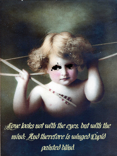 Blind is CupidA Poem by C.L. WilsonThis for my homies on the Page Masters Challenge 11. Inspired by Shakespearean quote "love looks not with the eyes, but with the mind; and therefore is winged Cupid painted blind".Blind is Cupid and his arrows are misguided With no choice we must abide. Blind is Cupid but he listens to things of sound He hears our flirting and makes us bound Blind is Cupid and he only goes with his gut And he aimed and aimed hard for out butts. Blind is Cupid and he almost always horribly wrong But it's not his fault for he listens to too many love songs. © 2009 C.L. WilsonReviews