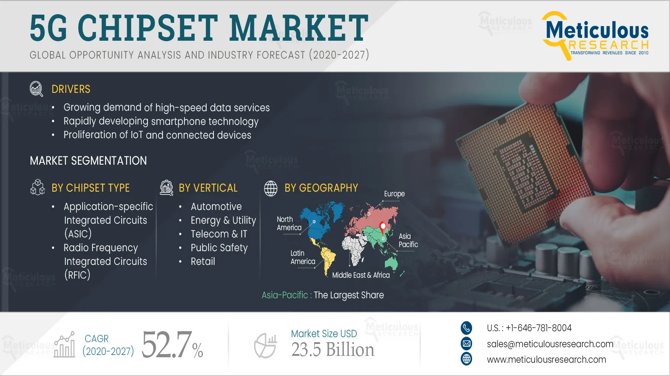 5G Chipset Market to Witness Rapid Technological AdvancementsA Story by RutukThe 5G Chipset Market is witnessing robust growth driven by increasing demand for high-speed connectivity and expanding 5G infrastructure globally. This report offers in-depth analysis of market dynamThe Global 5G Chipsets Market An Overview The global market for 5G chipsets has become one of the most active areas in the tech industry. This market analysis looks at data from 2019, estimates for 2020, and forecasts that go up to 2027. It offers important insights into this quickly changing field. According to this latest publication from Meticulous Research, the global 5G chipsets market is projected to reach a value of $23.5 billion by 2027, growing at a CAGR of 52.7% during the forecast period. The growing demand for high-speed data services, rapidly developing smartphone technology, and the proliferation of IoT & connected devices are the major factors driving the growth of this market. However, the high cost of equipment, the fragmented spectrum harmonization model, and rising cybersecurity concerns are expected to restrict the growth of this market to some extent. Key Players: The key players operating in the global 5G chipsets market (Marché des chipsets 5G) are Broadcom Inc. (U.S.), Qualcomm Inc. (U.S.), MediaTek Inc. (Taiwan), Intel Corporation (U.S.), Samsung Electronics Co. Ltd. (South Korea), ZTE Corporation (China), Qorvo Inc. (U.S.), Infenion Technologies (Germany), Fujitsu Ltd.(Japan), Macom technology solutions (U.S.), Unisoc Communications Inc. (China), Xilinx Inc. (U.S.), Huawei Technologies Co. Ltd. (China), and NXP Semiconductor N.V. (Netherlands). Market Applications and Segments The 5G chipsets market (Mercato dei chipset 5G) supports various applications across different sectors. These include automotive systems, transportation, smart manufacturing, smart cities, gaming, entertainment, and intelligent retail. In 2020, smart cities led the market, taking the largest share of total demand. Smart cities are leading the way in 5G chipset use because the technology effectively tackles major urban issues. Cities around the world are using 5G to improve infrastructure management, simplify real estate operations, enhance service accessibility, optimize transport networks, boost public safety systems, manage utilities, enable smart mobility solutions, monitor the environment, and set up smart lighting systems. Technical Categories and Frequency Bands On the technical side, the market includes various types of chipsets, such as application-specific integrated circuits (ASICs), radio frequency integrated circuits, millimeter wave technology chips, and field-programmable gate arrays. ASICs held the largest market share in 2020, mainly due to cost savings in large-scale production, better efficiency than other integrated circuits, and widespread use by mobile network operators aiming to cut costs. The frequency spectrum analysis shows three main categories: below 1GHz, sub-6GHz, and above 24GHz. The sub-6GHz segment led the market in 2020 because it provides solid coverage in crowded urban areas while allowing flexible deployment of widespread 5G networks. This frequency range's effective wall penetration and extended transmission distance make it suitable for both rural and urban areas. However, the above 24GHz segment is expected to grow the fastest during the forecast period. Industry Verticals and Consumer Impact The market includes many industry segments, such as automotive, public transportation, energy, utilities, telecommunications, IT, industrial automation, consumer electronics, security, surveillance, retail, and public infrastructure. Consumer electronics was the largest sector in 2020, driven by several important factors. The COVID-19 pandemic sped up adoption in this area, with a rise in the use of e-health applications, wellness platforms, e-learning systems, and digital services in the public sector. The increase in video calling and conferencing services during the pandemic also raised demand, along with more mobile subscriptions for 5G. Global Market Distribution Regionally, the market analysis looks at North America (United States and Canada), Europe (including France, Germany, Spain, Italy, the United Kingdom, and other European countries), Asia-Pacific (China, India, Japan, and the surrounding area), Latin America, and the Middle East and Africa. In 2020, Asia-Pacific led the global market, followed by North America and Europe. This leadership reflects several benefits, such as major tech companies producing 5G chipsets, high consumption due to large populations, and quick adoption of technology across various sectors. This market analysis shows that the 5G chipsets industry has tremendous growth potential and plays a vital role in providing next-generation connectivity solutions worldwide. Key questions answered in the report- Which are the high growth market segments in terms of application/chipset type/frequency/ processing node/ deployment/vertical/region? What was the historical market for 5G chipsets across the globe? What are the market forecasts and estimates for the period 2020"2027?